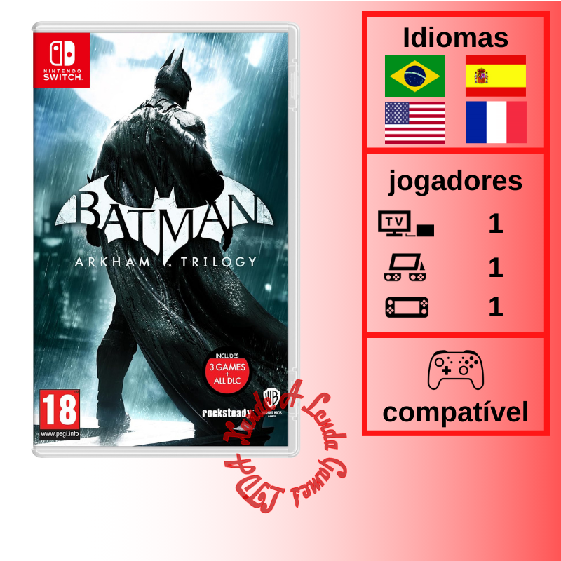 Enfrente os famosos supervilões da DC: O Coringa, o Espantalho, a Hera Venenosa e muito mais em Batman: Arkham Asylum. Mergulhe nas sombras do mundo aberto de Batman: Arkham City, o novo “lar” de segurança máxima para bandidos, gângsteres e gênios criminosos insanos. Em Batman: Arkham Knight, percorra as ruas de Gotham e enfrente a última ameaça na conclusão épica da trilogia.