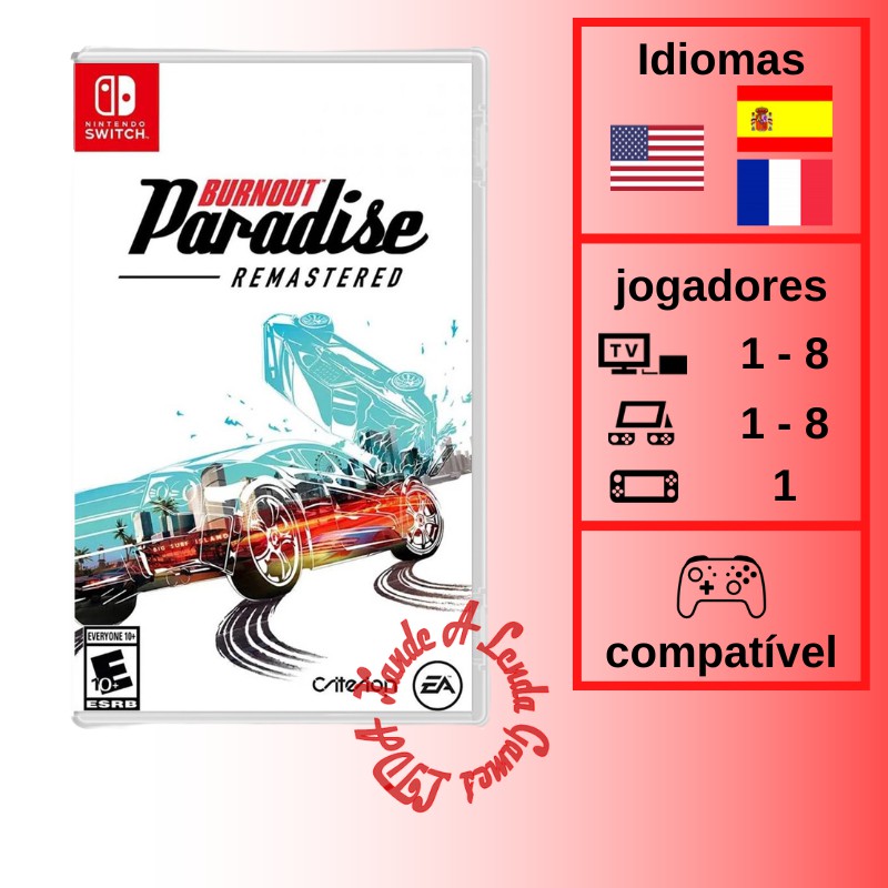 Burnout Paradise agora está disponível para Nintendo Switch, totalmente remasterizado e otimizado. Esse foi o quinto título da série de corrida no estilo arcada, a qual oferece uma jogabilidade agressiva à alta velocidade aos jogadores. Um dos principais objetivos da série é bater nos carros oponentes, fazendo-os colidir e sair da pista, ação a que se deu o nome de takedown.