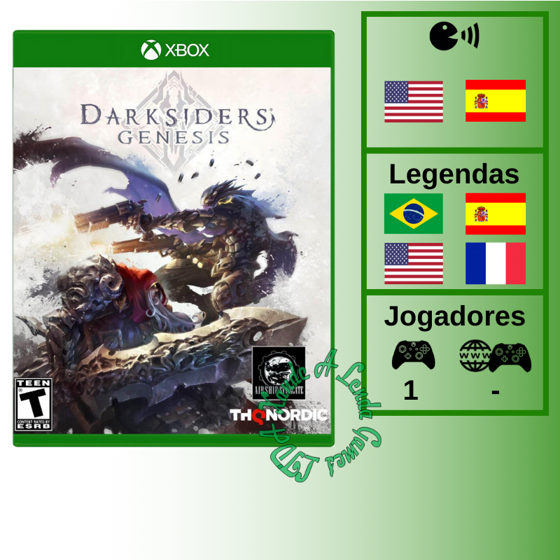 DARKSIDERS GENESIS é um jogo de ação e aventura que trilha um caminho pelo Inferno com muitas armas disparando e espadas empunhadas. Genesis dá aos jogadores a oportunidade de conhecer o mundo de DARKSIDERS antes dos eventos do jogo original, além de apresentar o quarto e último cavaleiro: CONFLITO. O modo de jogo cooperativo também faz sua estreia na franquia.