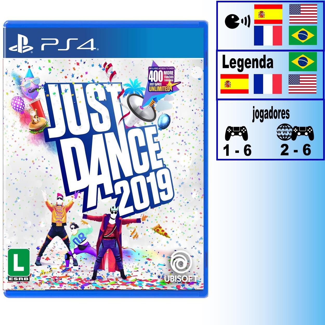 Dance as grandes sucessos incluindo: “One Kiss” de Calvin Harris, DuaLipa “Bum BumTam Tam” de MC Fiote “Finesse” de Bruno Mars “Mad Love” de Sean Paul, David Gueta … e muito mais! Ótimo para encontros, festas e férias, Just Dance 2019 junta seus amigos e sua família como nenhum outro jogo. Dance mais de 40 hits, músicas e coreografias baseadas no seu gosto & estilo! Tenha acesso a mais de 400 musicas do Catálogo em Just Dance Unlimited. Tudo o que você precisa é um celular para controlar seus movimentos com o aplicativo gratuito Just Dance Controller®. Junte-se à maior festa de dança on-line no reformulado World Dance Floor e concorra para ganhar recompensas.