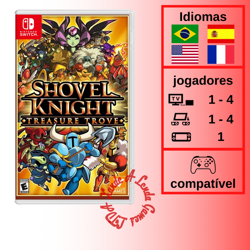 Shovel Knight: Treasure Trove é a coleção de Shovel Knight, com todos os 5 jogos da saga! Cave, exploda, corte e esmague o que cruzar seu caminho neste mundo fantástico inspirado no melhor dos jogos de plataforma de 8 bits, com personagens inesquecíveis e jogabilidade de ação e aventura sensacional.