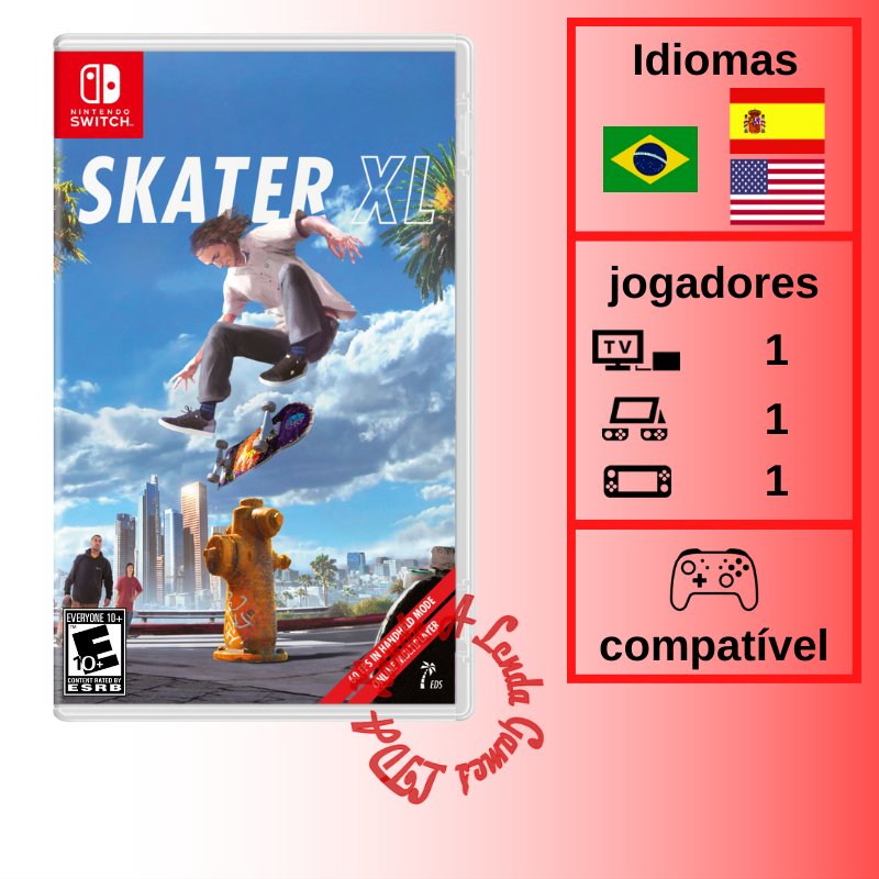 Mantendo-se fiel às suas bases, Skater XL para Nintendo Switch é um jogo sandbox de mundo aberto e criativo para você andar de skate, filmar, relaxar e criar do seu jeito. Possui recursos como multiplayer, um editor de replay, personalização de personagens e um arquivo sempre em atualização de equipamentos e mapas